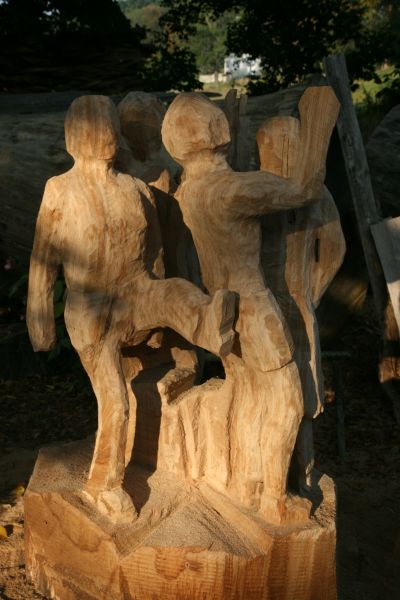 Da vor dem Wohnheim Bäume gefällt werden mussten, kam im Winter 2010/2011 der Betreiber des Wohnheims mit der Bitte auf mich zu...“etwas daraus zu machen“! Dem entsprechend wurde von mir der Gedanke geboren, die vier Studienjahre darzustellen Mit dem "Hoch(schul) seilgarten“ wird symbolisch das "Hangeln“ von einem Jahr zum Anderen dargestellt.